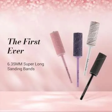 MelodySusie 50 Pcs Nail Drill Bits Super Long Sanding Bands with 6.65mm Crystal Mandrel Bit, 180 Fine Grit Nail File for Acrylic Nails Gel Manicures and Pedicure, Pink