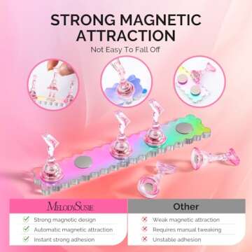When compared to other nail stands on the market, the MelodySusie Aurora Nail Stand Set truly excels. While many alternatives may offer a basic design, our magnetic and reusable elements not only decrease the clutter of traditional stands but also enhance ease of use and functionality. The quality and aesthetic of the aurora bases stand out, ensuring that your nail art is displayed with elegance.