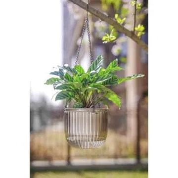 Melphoe 2 Pack Self Watering Hanging Planters Indoor Flower Pots, 6.5 Inch Outdoor Hanging Plant Pot Basket, Plant Hanger with 3Hooks Drainage Holes for Garden Home (Gray + White)