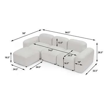 Melpomene Convertible Modular Sectional Sofa,Modern Minimalist 94.5" DIY L Shaped Reversible Loop Yarn Sofa Couch for Living Room,Apartment,Office(Ivory)