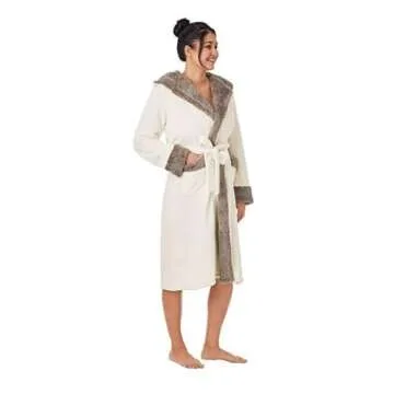 Member's Mark Women's Hooded Plush Robe with Faux Fur Accents (Ivory, L/XL)