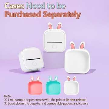 Memoking Mini Portable Printer - T02 Mini Inkless Printer Pocket Thermal Sticker Printer Mini Sticker Printer Mobile Picture Printer for Student, Gift, White (Bunny Case Not Included)