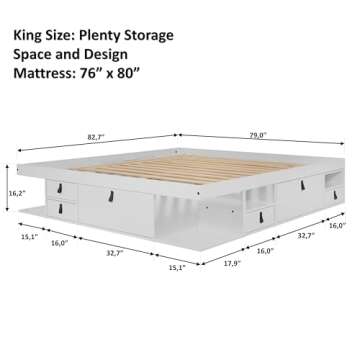 Memomad Bali Storage Platform Bed with Drawers (King Size, Off White)