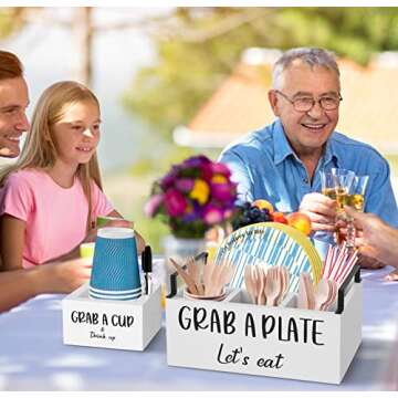 Show more Elevate your hosting experience with our exquisitely designed 2 Set Utensil Holders, which include a silverware organizer and a paper cup organizer along with a napkin holder. This thoughtful design allows for efficient organization and storage of essential kitchen items such as knives, forks, spoons, tissues, and cups, ensuring that every item has its designated spot. The two-piece arrangement is perfect for quick access and convenience, making a cluttered kitchen a thing of the past.