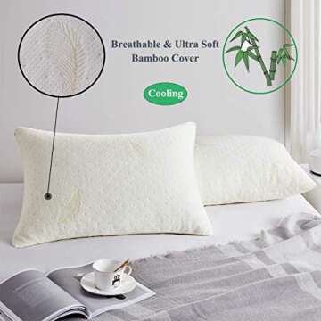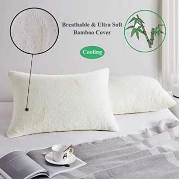 Show more Introducing our Memory Foam Pillow, designed to elevate your bedtime routine with comfort and style. Crafted with shredded memory foam, this standard-sized sleeping pillow adapts perfectly to your personal preferences, allowing you to customize the fill for impeccable support. Feel the difference with its cooling cover made of 40% Viscose Rayon and 60% Polyester, ensuring a breathable and refreshing night's sleep. Whether you sleep on your back, side, or stomach, this pillow cradles your head and neck for unparalleled comfort while helping to relieve neck pain.