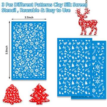 MEMOVAN Christmas Silk Screen for Polymer Clay 3Pcs Reusable Christmas Silk Screen Stencils for Polymer Clay Cutters Printing on Clay Kit for Jewelry Making Christmas Earring Decoration