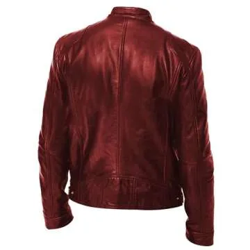 Men Faux Leather Zip Up Jacket Stand Collar Leather Motorcycle Jacket Lightweight Bomber Outwear PU Coat (XL 码,Red)