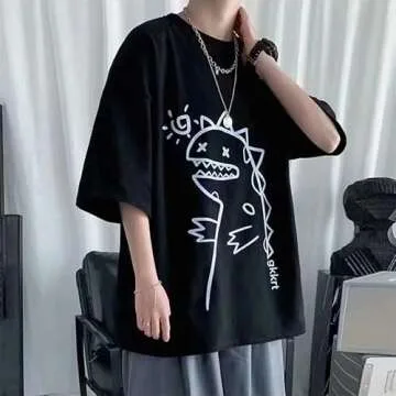 Men Harajuku Streetwear T-Shirt Grunge Oversized Baggy Tee Shirt Y2K Aesthetic Dinosaur Print Goth Emo Summer Clothes