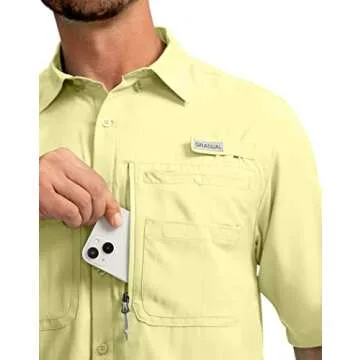 Men's Fishing Shirts with Zipper Pockets UPF 50+ Lightweight Cool Short Sleeve Button Down Shirts for Men Casual Hiking(Sunlit, Large)