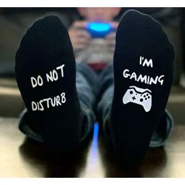 Men's Funny Do Not Disturb I'm Gaming Socks NON SLIP Organic Combed Cotton Black One Size