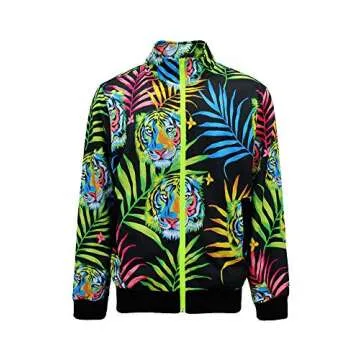 Men's Neon Jungle Tiger Track Suits 2 Piece Sweatsuit Set ST802 - Black - Small - V-C31