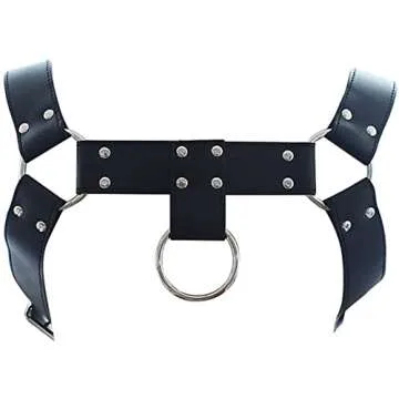 Men's PU Leather Shoulder Support Chest Harness Adjustable Buckles Accerssory (black)