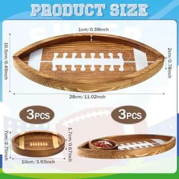 Menkxi 3 Set Football Shaped Wooden Serving Tray and Bowl, 11.02 Inch Football Serving Tray Reusable Football Platter with Chip and Dip Tray for Football Birthday Gameday Tailgate Party Decorations
