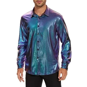 Men's Disco Shirt Outfit Retro 70s 80s Sequin Glitter Long Sleeve Button Down for Nights Out