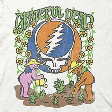 Mens Grateful Dead Rock Shirt - Grateful Dead Steal Your Face Skull Dancing Bear Vintage Tee (White Garden, Medium)