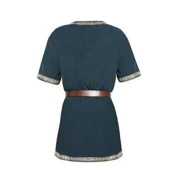 Show moreStep into a world of adventure and elegance with the Mens Medieval Knight Tunic from Pretifeel. This carefully crafted tunic is more than just a piece of clothing; it is an invitation to explore the realms of fantasy, history, and imagination. Made from a breathable blend of Cotton & Polyester, the tunic promises comfort and lightness, whether you’re participating in a thrilling LARP (Live Action Role Play), enjoying a Renaissance fair, or dressing up for a Halloween masquerade. The tunic features an embroidered trim and a classic V-neck design that evokes the spirit of medieval warriors and Scottish heroes, making you the centerpiece of any gathering.
