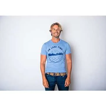Mens On Lake Time Tshirt Cool Outdoor Camping Tee for Guys Funny T Shirts Cool Camping T Shirt Novelty Tees for Guys Light Grey L