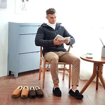 Show moreStep into a world of comfort with the Mens Moccasins Cozy House Bedroom Shoes. Designed for those who cherish relaxation, whether at home or on the go, these slippers feature a plush interior and a robust exterior. Made with a premium micro suede upper, they effortlessly combine elegance and durability. The rich, soft plush lining provides exceptional warmth, wrapping your feet in coziness, while the innovative memory foam cushioning molds to the unique shape of your feet. This thoughtful design ensures that every step you take feels as comforting as walking on clouds, relieving the stress of a long day.