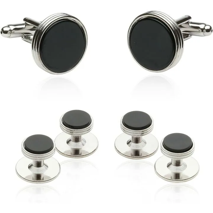 Men's Tuxedo Cufflinks & Studs Set in Black Onyx & Silver