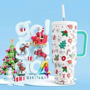 Show more The Meoky travel coffee mug is a delightful companion for anyone looking to spread holiday cheer while enjoying their favorite beverages. With its vibrant design and festive patterns, this tumbler elevates each sip to a joyous celebration of the season. Whether you're sipping hot cocoa or a refreshing iced drink, the double-wall vacuum insulation ensures that your drinks stay perfectly cold, making it ideal for both chilly winter days and warmer holiday gatherings.