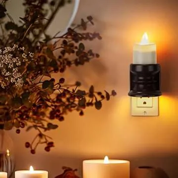 Meonum 2 Pcs Flameless Candle Night Light Plug into Wall, LED Motion Sensor Dusk to Dawn Nightlight Farmhouse Vintage Rustic Flicker Night Light for Adults Decorative Bedroom Bathroom Kitchen Hallway
