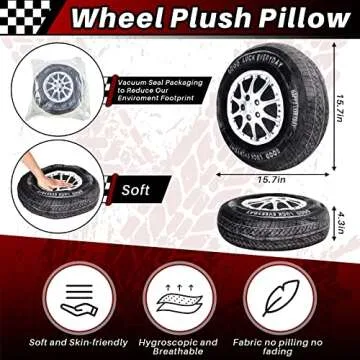 Meooeck 2 Pcs 15.7 Inch 3D Simulation Wheel Plush Pillow Car Tire Big Soft Chunky Tire Pillow Wheel Sofa Seat Toy for Boys Funny Bedroom Decor Race Car Party Gift(15.7 Inch)