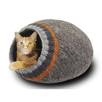 Show moreThe MEOWFIA Premium Wool Cat Bed Cave is a luxurious haven designed specifically for your feline friends. Crafted from 100% eco-friendly Merino wool felt, this bed boasts durability, softness, and thermal regulation, making it the perfect sanctuary for your cat to curl up in. Its unique dark gray color with a knitted texture adds a touch of elegance to your home decor. The spacious design of the large cat bed cave ensures a cozy fit for large cats, while its natural materials make it an exceptional choice for environmentally conscious pet owners. Give your pet a cozy retreat that they will love!