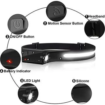 The headlamp isn't just about brightness; it’s packed with features that enhance functionality and user experience. One of the standout features is the built-in motion sensor, allowing you to simply wave your hand to turn the light on or off—an essential feature when your hands are busy or you’re on the move. Additionally, the headlamp comes equipped with a rechargeable battery with an upgraded input port for rapid charging, offering convenience and saving you the hassle of constantly replacing batteries.