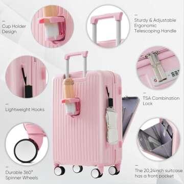 - Security Features: Each suitcase is outfitted with a 3-digit TSA combination lock for enhanced security, ensuring your belongings are safe during travel.