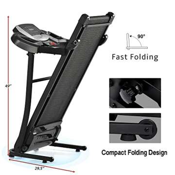 Show more The Space Saver Folding Treadmill is the perfect companion for fitness enthusiasts and beginners alike, designed to seamlessly fit into your lifestyle while maximizing your workout space. With its innovative easy folding design, this treadmill features convenient front wheels for effortless transportation and storage, allowing you to place it in the corner of any room without sacrificing valuable floor space. Crafted by Merax, a brand synonymous with quality and performance, this treadmill promises not just convenience but also an exceptional workout experience.