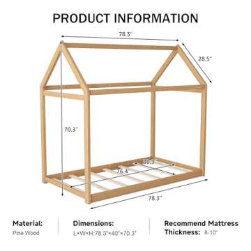 Show moreThe Merax Twin Size Wooden House Bed combines durability and whimsy, making it the perfect addition to any child's room. Crafted from high-quality pine wood and MDF, this bed promises to withstand the rigors of everyday use while bringing an enchanting house-inspired design into your home. The wood color effortlessly matches various interior styles, making it a versatile choice for parents looking to enhance their child's space. Not only does this bed offer a cozy sleeping area, but its imaginative design also encourages creativity and imaginative play, ensuring the space is both functional and fun!