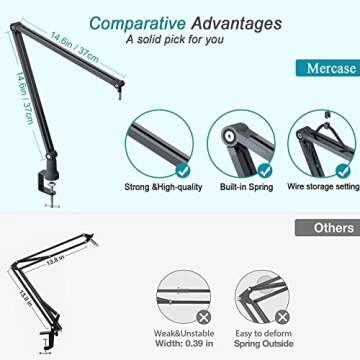 Mercase Boom Arm, Foldable Desktop Metal Mic Stand, Adjustable Scissor Microphone Arm Stand with Desk Mount Clamp, Hidden Cable Trough, 3/8" to 5/8" Adapter for Blue Yeti Snowball HyperX QuadCast
