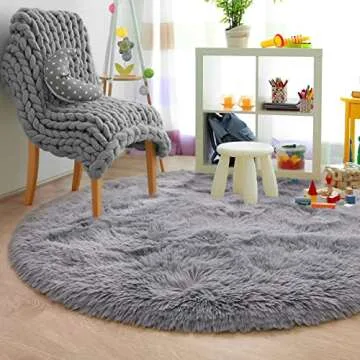 Merelax Grey Round Rug - Cozy Fluffy Circle Rug for Kids, 4'x4'