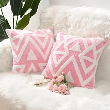 Introducing the Merelax Fluffy Pink Throw Pillow Covers, a stunning blend of elegance and unmatched comfort designed to elevate your home decor. Crafted from a premium plush wool fleece, these 18x18 inch decorative pillow covers are not just soft but also highly functional. Their chic, vibrant pink color combined with delightful patterns seamlessly enhances the aesthetic of any room, making these a must-have addition for your living space. Whether styled on your sofa or as...