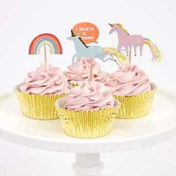 Show moreCelebrate in magical style with the Meri Meri Cupcake Kit: I Believe In Unicorns, a delightful collection designed specifically for those who cherish whimsical celebrations. This enchanting pack features 24 exquisitely crafted cupcake toppers, ensuring that every dessert at your gathering radiates charm and joy. Each topper showcases a vibrant unicorn adorned with glitter and detailed designs, making them not just decorations but the stars of your cupcakes!