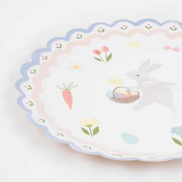 When compared to standard paper plates, the Meri Meri Easter Bunny Dinner Plates set themselves apart with their premium 450gsm construction, offering greater durability without sacrificing decoration. The unique scalloped edges and pastel colors add a level of elegance that generic disposable plates lack. Plus, the charming bunny design perfectly encapsulates the spirit of Easter, making these plates not just functional, but a key part of your celebration's aesthetics.