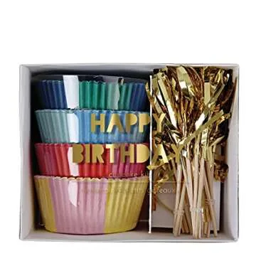 Meri Meri Happy Birthday Cupcake Kit with Colorful Cases and Toppers
