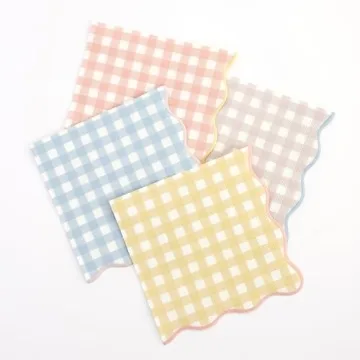 Show moreIntroducing the **Meri Meri Large Gingham Napkins**, the perfect blend of functionality and style for your next celebration! Made from high-quality 3-ply paper, these disposable napkins not only serve their practical purpose but also enhance your table setting with their beautiful designs. With a delightful pack of **20 vibrant napkins** featuring an assortment of four cheerful colors - coral, blue, yellow, and pink - you can easily coordinate your decor for any occasion. The classic gingham print is timeless, adding a touch of charm and elegance to your gatherings.