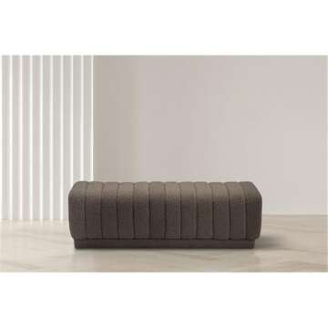 Meridian Furniture 150Brown Heathrow Collection Modern | Contemporary Ottoman/Bench with Rich Brown Boucle Fabric and Deep Channel Tufting, 52" W x 16" D x 16" H, Brown