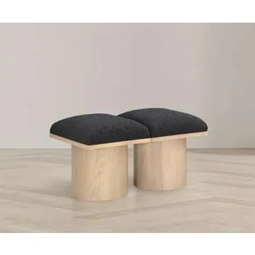 Meridian Furniture 465Black-2B Pavilion Collection Art Deco Bench with Rich Black Boucle Fabric and Natural Finished Oak Veneer, 31" W x 18" D x 17.5" H, Black