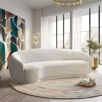 Show more Introducing the Meridian Furniture 693Cream-S Hyde Collection Modern Sofa, a striking centerpiece for any modern living space. Crafted with meticulous attention to detail, this sofa features a luxurious rich cream boucle fabric that exudes elegance and sophistication. Measuring 89.5 inches wide, 38 inches deep, and 27.5 inches high, it provides ample seating for family and friends while making a bold style statement. The rounded back design adds an inviting touch, ensuring comfort without sacrificing style, making this sofa the perfect addition to contemporary homes.