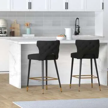 Meridian Furniture 791Black-C Kelly Collection Modern | Contemporary Velvet Upholstered Counter Height Stool with Gold Tipped, Black Metal Legs, Black, 22" W x 19" D x 38.5" H, Set of 2