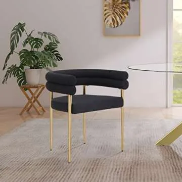 Introducing the Meridian Furniture 804Black-C Brielle Collection Dining Chair, a stunning fusion of contemporary design and luxurious comfort. This beautifully upholstered dining chair features a rich black boucle fabric that not only adds an element of sophistication but also ensures durability for everyday use. The striking brushed brass finish on its iron metal frame enhances its modern aesthetic, making it a perfect addition to your dining space. With dimensions of 25.5"...