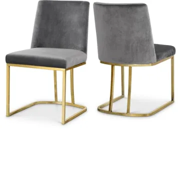 Meridian Furniture Heidi Collection Modern Dining Chair Set – Grey Velvet & Gold