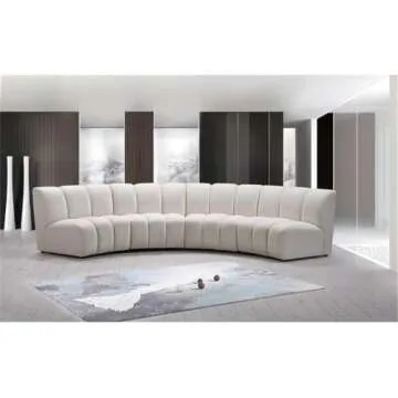 Show moreIntroducing the Meridian Furniture Infinity Collection Modern Modular Sectional, a stunningly designed piece that redefines luxury and comfort in your living space. Crafted with soft cream velvet, this sectional showcases an elegant deep channel tufting that adds texture and sophistication to any contemporary home. With an overall product dimension of 148" W x 59" D x 32.5" H, it offers ample seating for family and friends while being stylish enough to impress your guests. The sleek design features a leg height of 1.2", giving it a modern flair that fits seamlessly into any décor.