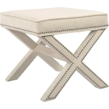 Meridian Furniture Nixon Collection Modern | Contemporary Velvet Upholstered Ottoman / Bench with X-Leg Design, Deep Button Tufting and a Solid Wood Frame Cream 20.5" W x 20.5" D x 19" H