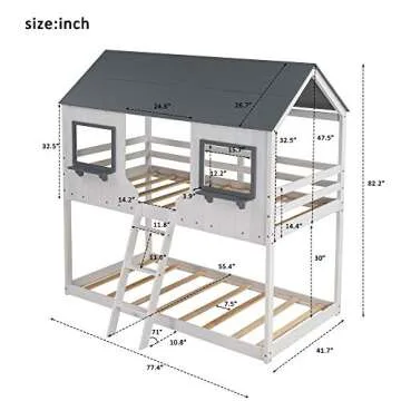 Show moreIntroducing the **MERITLINE Wood Bunk Bed Frame**, a stunning twin-over-twin comfort solution designed specifically for your little ones! This unique house-shaped bunk bed not only enhances the appeal of your child’s room but also offers an imaginative play space. The all-white finish adds a charming touch, making it perfect for both boys and girls. Its innovative design allows for customization with bed tents or string lights, transforming ordinary sleep into an enchanting experience. Built to accommodate the whimsical dreams of children, this bed is as much a playhouse as it is a sleeping space.
