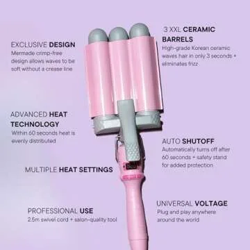 Show moreAchieve Perfect Beachy Waves effortlessly with the Mermade Hair 1.25" PRO Waver! This stylish pink hair tool is not just about looks; it’s designed with 3 ceramic barrels that allow you to create shiny, bouncy waves in seconds. Whether you have thick, thin, long, or short hair, this versatile waver makes it quick and easy to achieve stunning beachy waves that will turn heads.