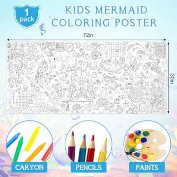 Mermaid Giant Coloring Poster for Kids 30 x 72 Inch, Mermaid Large Coloring Poster Sheets Tablecloth, Mermaid Themed Color-in Activities Games for Kids School Classroom Home Party Supplies Decorations