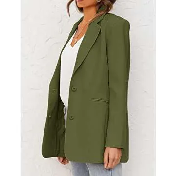 Show moreIntroducing the MEROKEETY Women's 2024 Fall Casual Blazers, a stylish addition to your wardrobe for the modern woman. This chic blazer effortlessly combines elegance and versatility, making it perfect for a variety of occasions. Crafted from a soft fabric and designed with a breathable lining, it offers all-day comfort without sacrificing style. Featuring a long sleeve design, notch lapel open front, and a unique large lapel that creates a flattering V-neck effect, this blazer is designed to elevate your look. It comes in sizes Small to XX-Large, catering to women of different sizes, and is available in a rich Army Green color, apt for the fall season.